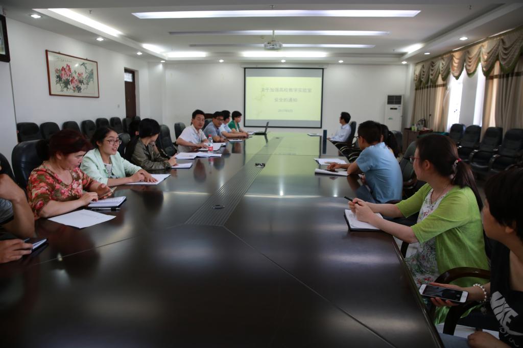 为进一步提升教师的实验室安全意识,预防和减少实验室安全事故发生,5月23日教务处集中组织各系部主管实验室安全的领导、实验(训)中心(室)主任进行了实验室安全管理培训。会上徐琳副处长根据教育部办公厅《关于加强高校教学实验室安全的通知》(教高厅[2017]2号)文件要求,安排部署2017年实验实训安全排查工作和实验实训中心安全管理工作,程红娜科长带领大家学习河南省教育厅《关于进一步加强高校实验室安全建设》(教高[2016]355号)文件、《实验实训中心安全防护制度》和《危险物品管理暂行办法》,最后,刘红敏副处长对此次安全检查的重点进行了要求,特别强调了规范化学危险品的使用和管理是实验室安全工作的重中之重,并与教师就实验室安全工作进行了交流。