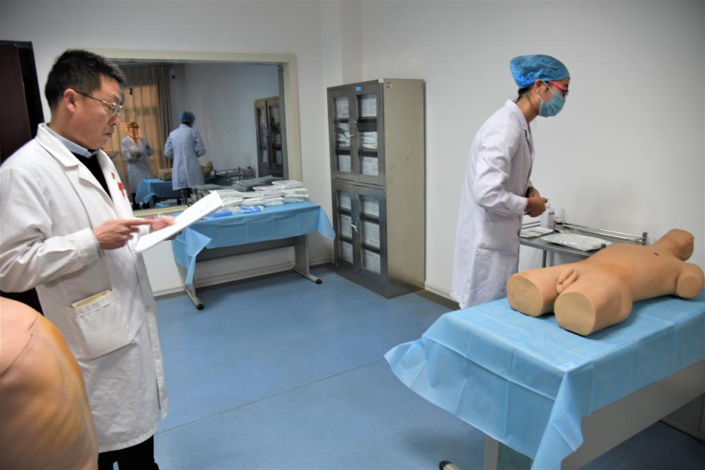 学校高度重视此次考核,副校长王福青现场指导工作。教务处副处长刘红敏指出,医疗系和教师要明确此次考核的目的和意义,每位教师要认真准备,积极参与,发现不足,补齐短板,为实训教学打下良好基础,也希望各位评委专家能够对教师的操作给予客观、公正的评价,对教师操作中存在问题进行指导,进一步提升教师的操作水平。